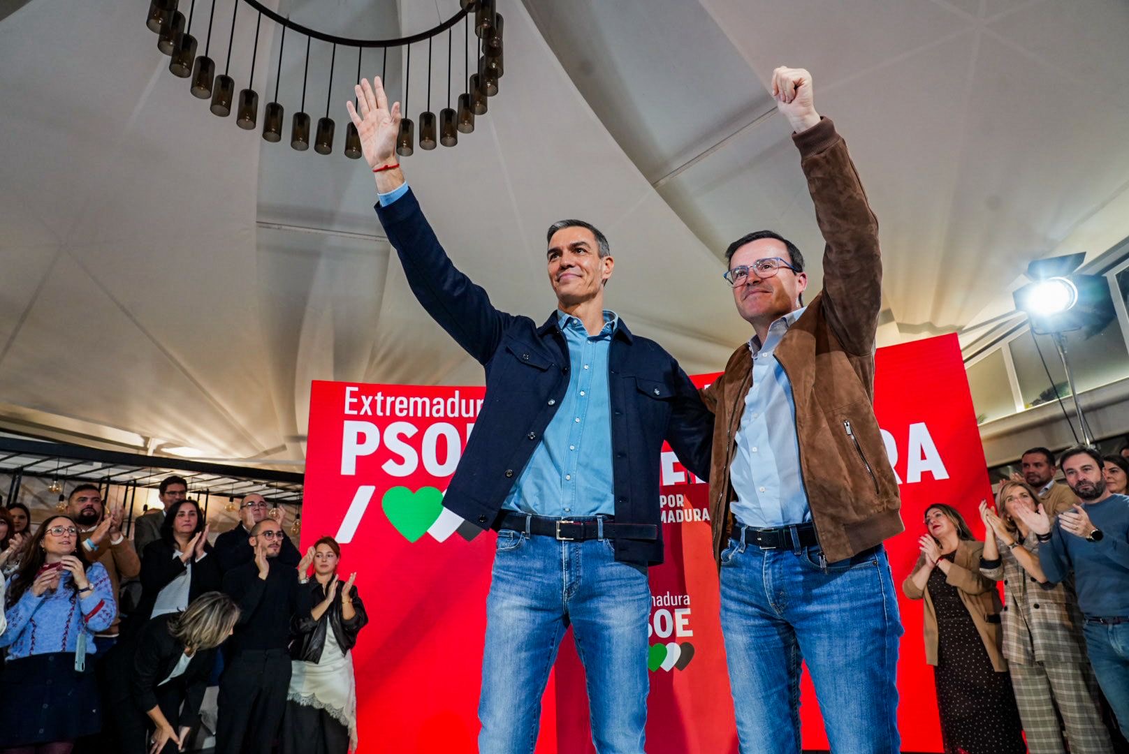 Lo ha hecho en un multitudinario acto acto público en la carpa del Hotel las Lomas de Mérida junto al secretario general del PSOE y presidente del gobierno, Pedro Sánchez, que ha congregado a más de 2000 personas, completando el aforo del recinto hasta el punto de que mucho de los asistentes han tenido que seguir el acto desde fuera.